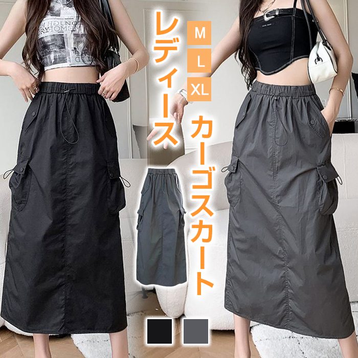 マキシスカート ロングスカート レディース カーゴスカート ミリタリー 無地 ボトムス スカート マキシ 膝下 ひざ下 ゆったり ウエストゴム