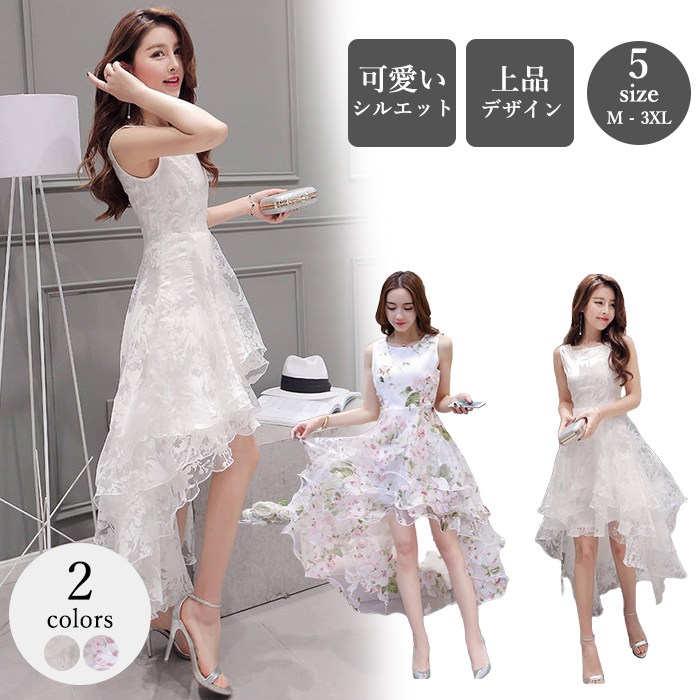 ドレス レディース ワンピース アシンメトリー オーガンジー フレア パーティー 二次会 結婚式 披露宴 お呼ばれ 発表会 演奏会 エレガント