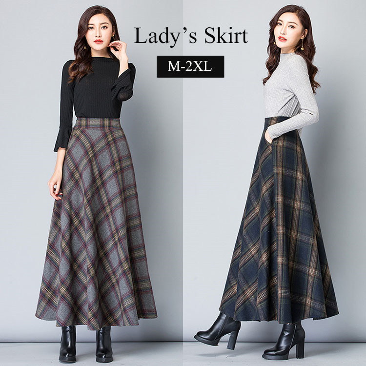 スカート ボトムス レディース ラシャスカート 秋冬 きれいめ チェック フレア Aライン 美脚 20代30代40代 大きいサイズ 通勤 2色