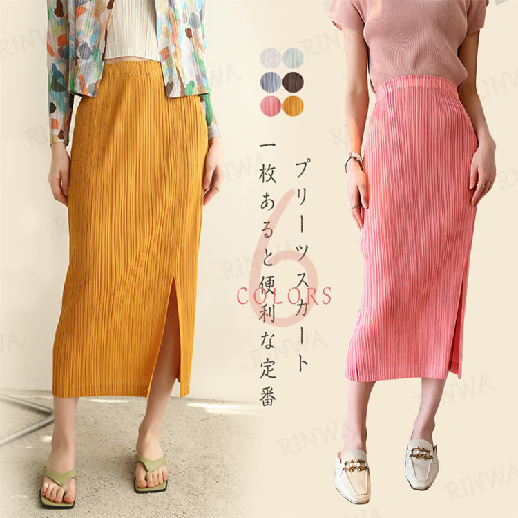 着痩せ スカート プリーツスカート マキシスカート 無地 スカート マキシ ロングスカート レディーススカート 旅行 ファッション トレンド 普通着 お出かけ お呼ばれ ビビッド