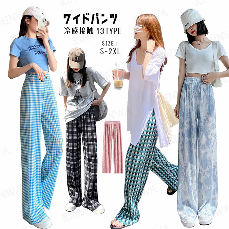 ワイドパンツ プリーツパンツ ボトムス レディース プリーツ ゆったり 大きいサイズ 低身長 高身長 柄 パンツ ワンマイルウェア