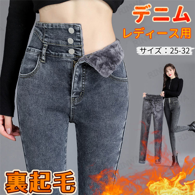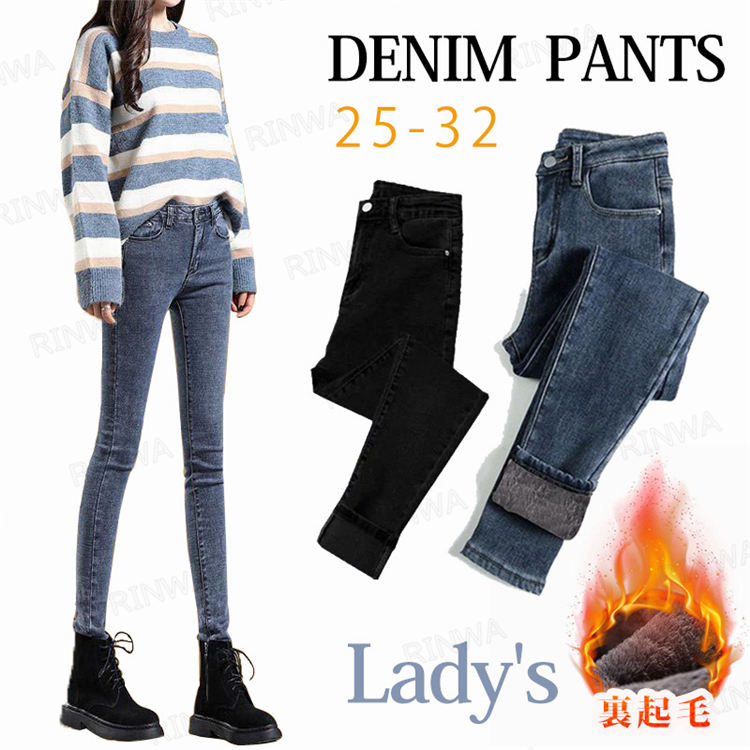 シンプルデニムも裏起毛で暖かく☆すっきり美脚魅せスキニー♪ 裏起毛パンツ スキニーデニムパンツ 女性用 暖かい 裏起毛素材 ジーパン 可愛い ハイウエスト 美脚見せ 秋冬 防寒 冬用