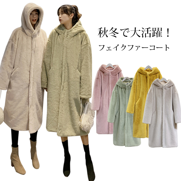 オーバーサイズロングフード付きファーコート ふわふわ 防寒コートレディースファッション コート ジャケット