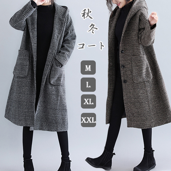 チェスターコート レディース トレンチコート チェック柄 千鳥格子 ロングコート ミモレ丈 大きいサイズ レディース ロングアウター ロング チェスター