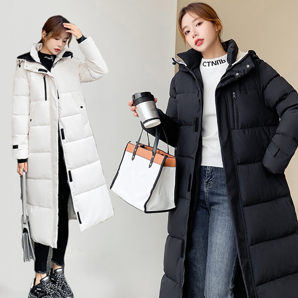 寒い冬に欠かせないアイテムーマキシ丈中綿コート ホワイト ブラックレディースファッション コート ジャケット
