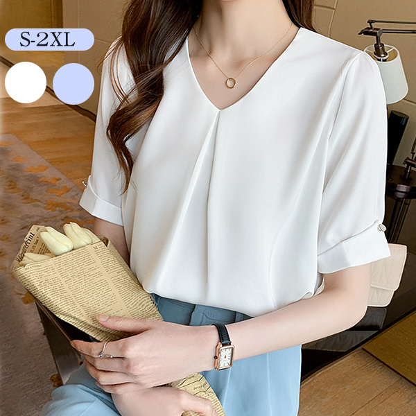 小顔効果があるVネックデザイン、通気性が抜群 滑らかで着心地がいい レディースファッション トップス シャツ ブラウス