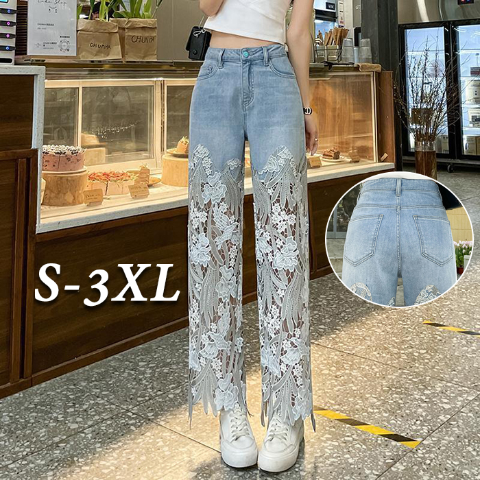 お洒落なでデニムワイドパンツ 履き心地がよい 切り替え 肌見せレディースファッション ボトムス パンツ