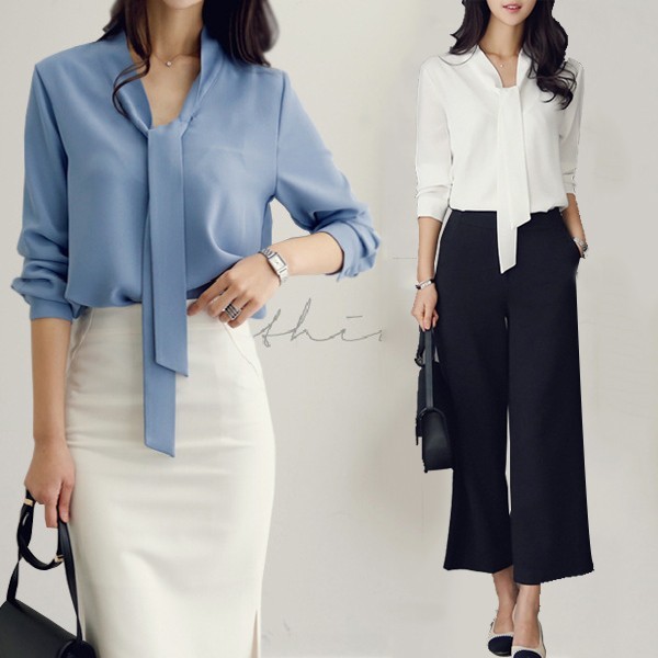 レディース ブラウス ボウタイ 長袖 シャツ シフォン レディース ブラウス オフィス 七分袖 長袖