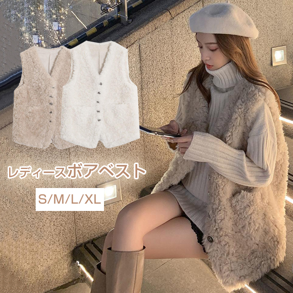 女性らしい魅力と可愛さを演出でき、これからの季節にピッタリ ファーベスト ボアベスト Vネック 防寒