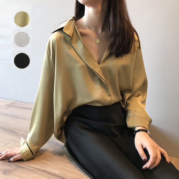 上品な光沢感 シャツ レディース ブラウス サテン オフィス 長袖シャツレディースファッション トップス シャツ ブラウス