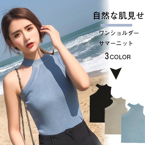 自然な肌見せができるレディースワンショルダートップス~サマーニットで暑くないし、フェミニンアップ ストレッチがあるカットソー素材で柔らかい~シンプルコーデにオススメ一品です