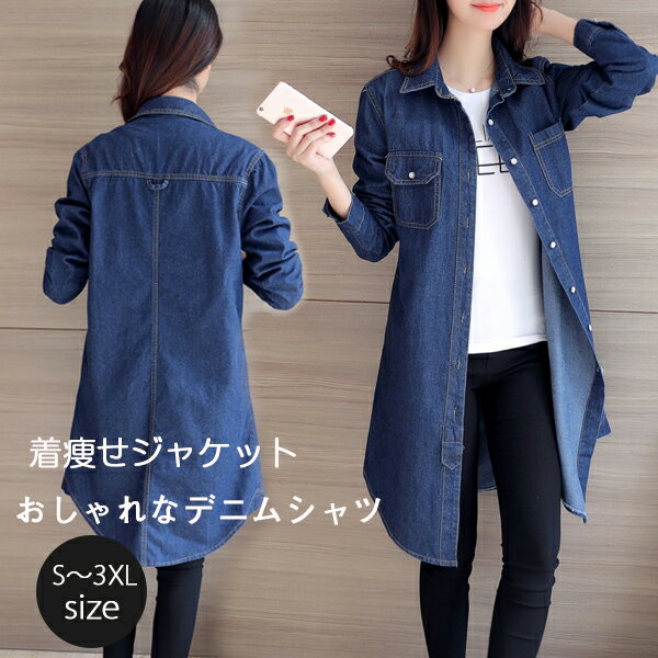 ロングデニムシャツ 春服 レディース トップス デニム シャツ長袖 春アウターデニムワンピ 着痩せ おしゃれロングデニムシャツジャケットNEW季節感 春 夏