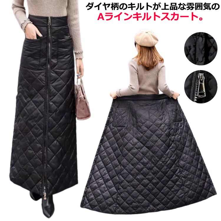 キルティングスカート ロング スカート キルト キルティング ロングスカート aラインスカート フロントボタン