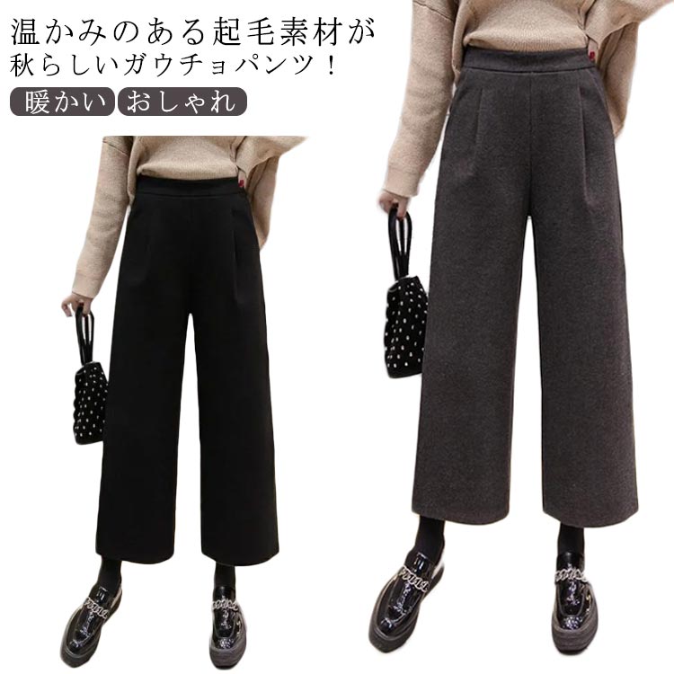 ハイウエスト レディース ガウチョパンツ ワイドパンツ 秋冬 起毛素材レディースファッション ボトムス パンツ