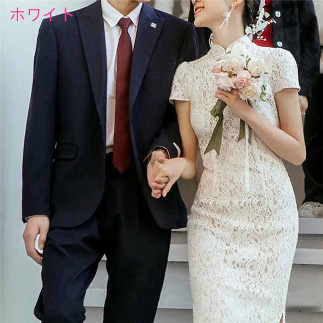 ホワイト ウェディングドレスAライン ミデイアム丈ミディアム丈ミディアムドレス半袖袖ありトレーン ファスナータイプxs~xxlWedding