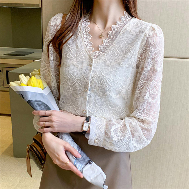 ホワイト ベージュ総レースブラウス シャツ レディース 長袖 Vネックトップス カジュアル きれいめ おしゃれ かわいい 春秋 大きめ 無地 フォーマル 白 tシャツトップスレディーストップスS M