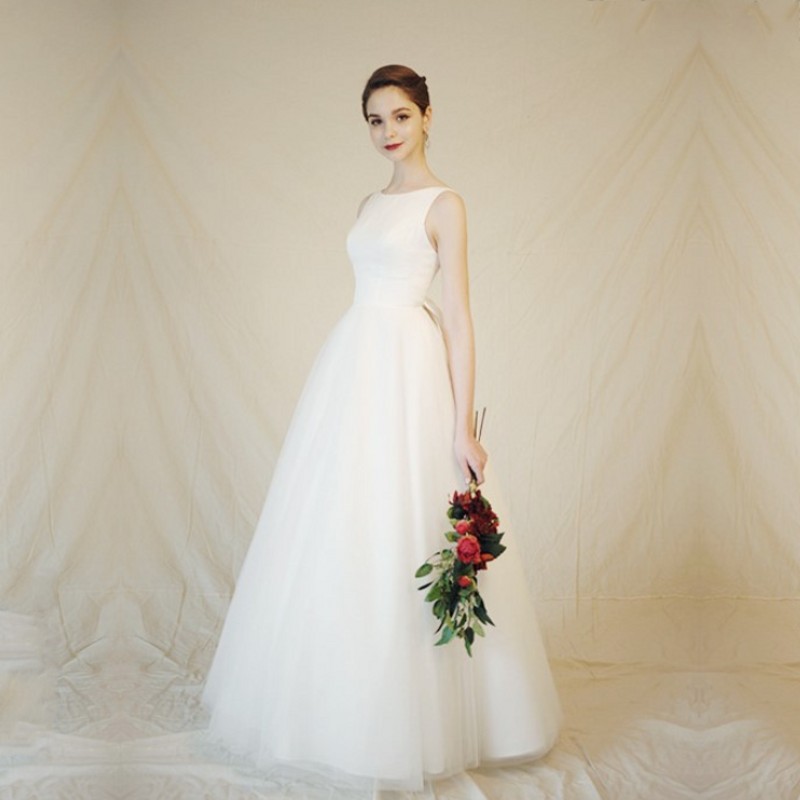 ウェディングドレスラインノースリーブロングドレス イブニングドレス 編み上げタイプ~ お花嫁結婚式旅行撮影演出レディースウェディングドレスエレガントパーティードレス丸