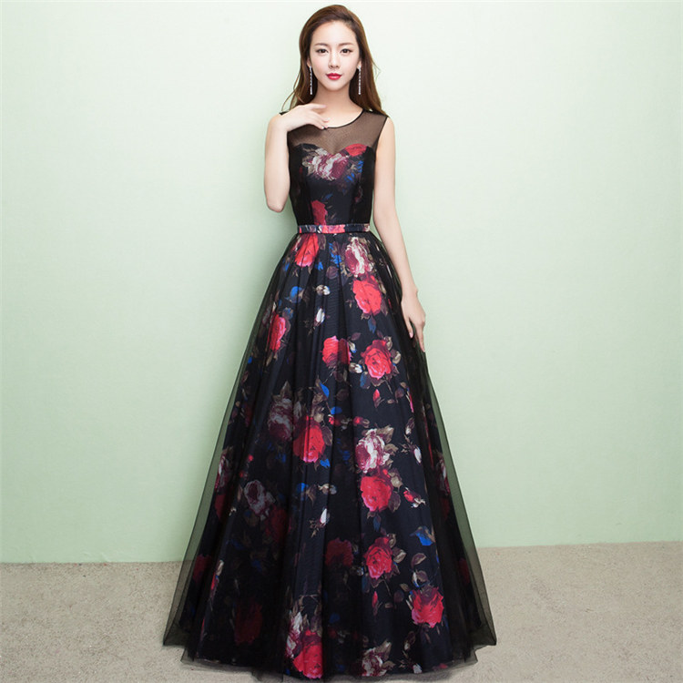 ブラック パーティードレスロング丈フォーマルドレスマキシ丈ワンピース二次会演出司会 結婚式お呼ばれ忘年会司会エレガントレースファスナータイプ ロングドレスプリント丸襟