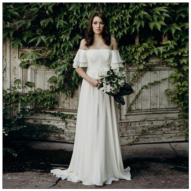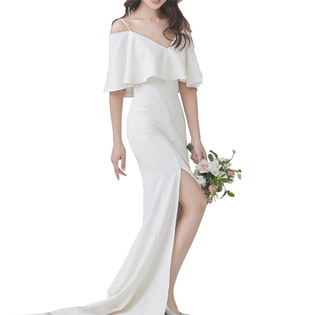 ホワイト オフショルダー二次会ドレス パーティードレス トレーン 二次会演出司会 結婚式お呼ばれレディースファッション ドレス