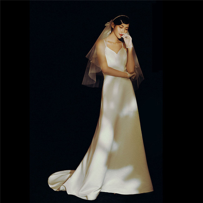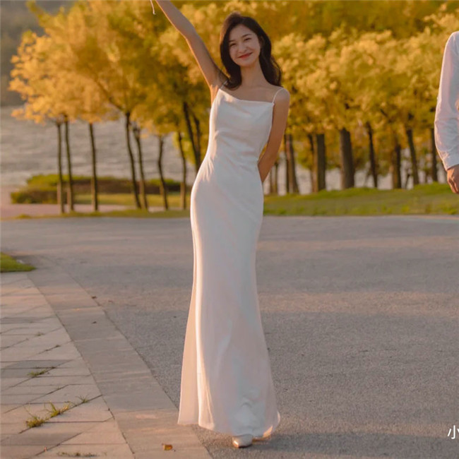 ホワイト 吊りスカート ウェディングドレスAラインファスナータイプトレーン レース 素地 xs~xlWedding Dressお花嫁結婚式旅行撮影演出レディースウェディングドレス