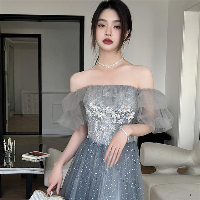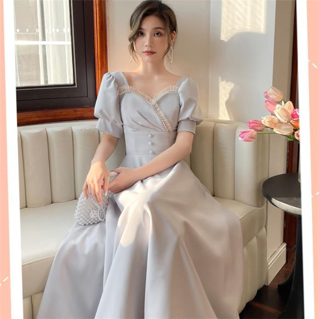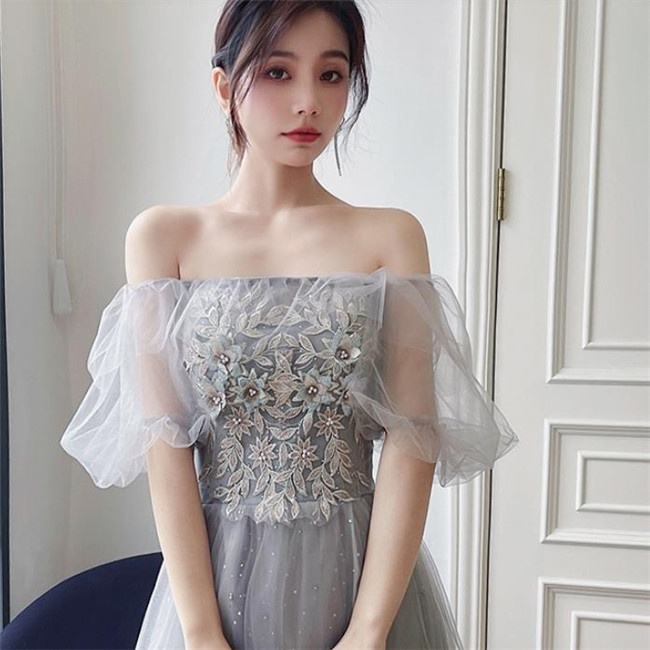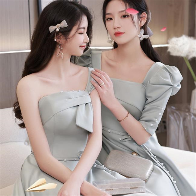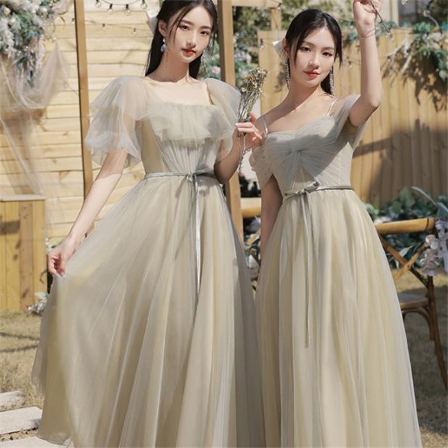 グレー ブライズメイドドレスパーティードレスワンピース二次会演出司会結婚式お呼ばれ ロングドレスマキシ丈ブライズメイドドレス二次会ドレスフォーマルドレス