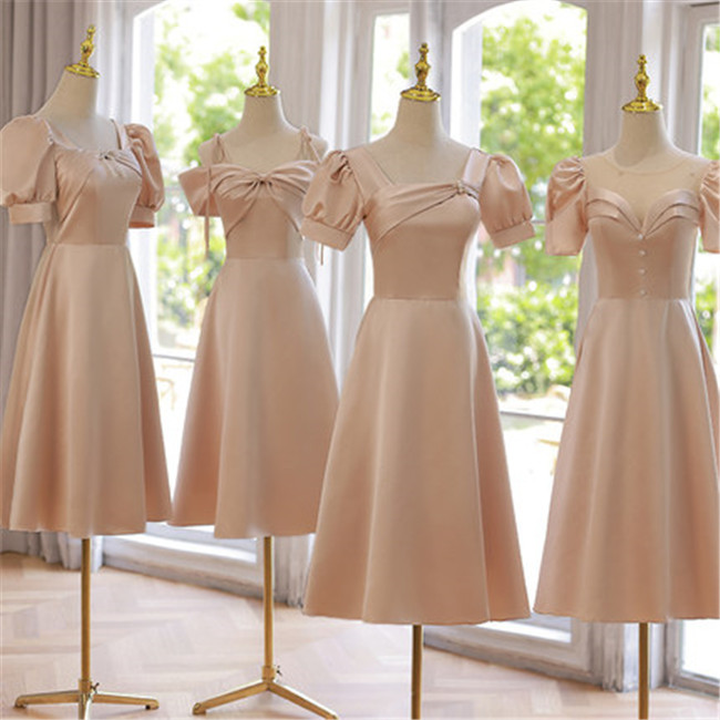 シャンパン ブライズメイドドレスパーティードレスワンピース二次会演出司会結婚式お呼ばれ ミディアム丈、ミモレ丈ブライズメイドドレス二次会ドレスフォーマルドレス