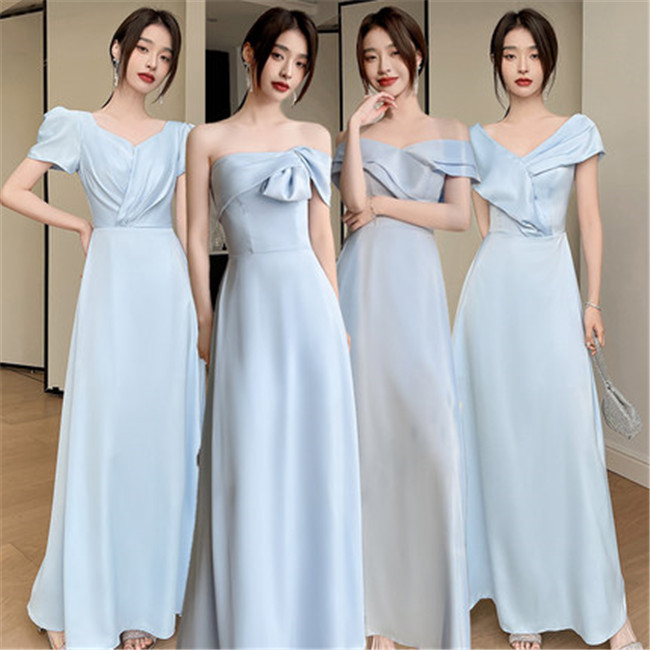 ブルー ブライズメイドドレスパーティードレスワンピース二次会演出司会結婚式お呼ばれ ロングドレスマキシ丈ブライズメイドドレス二次会ドレスフォーマルドレス