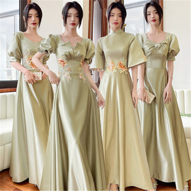 グリーン ブライズメイドドレスパーティードレスワンピース二次会演出司会結婚式お呼ばれ ロングドレスマキシ丈ブライズメイドドレス二次会ドレスフォーマルドレス