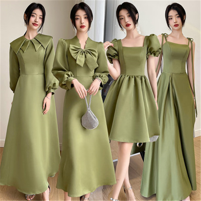 グリーン ブライズメイドドレスパーティードレスワンピース二次会演出司会結婚式お呼ばれ ミディアム丈、ミモレ丈ブライズメイドドレス二次会ドレスフォーマルドレス