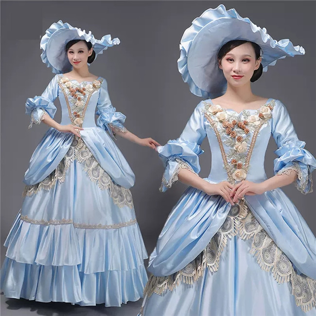 シャンパン ライトブルー 貴族 衣装 王族服 ジュリエット カラードレス 新劇演出 現代劇演出 ヨーロッパ風 結婚式 演出服 パーティードレスコスプレ衣装コスチュームS M L XL