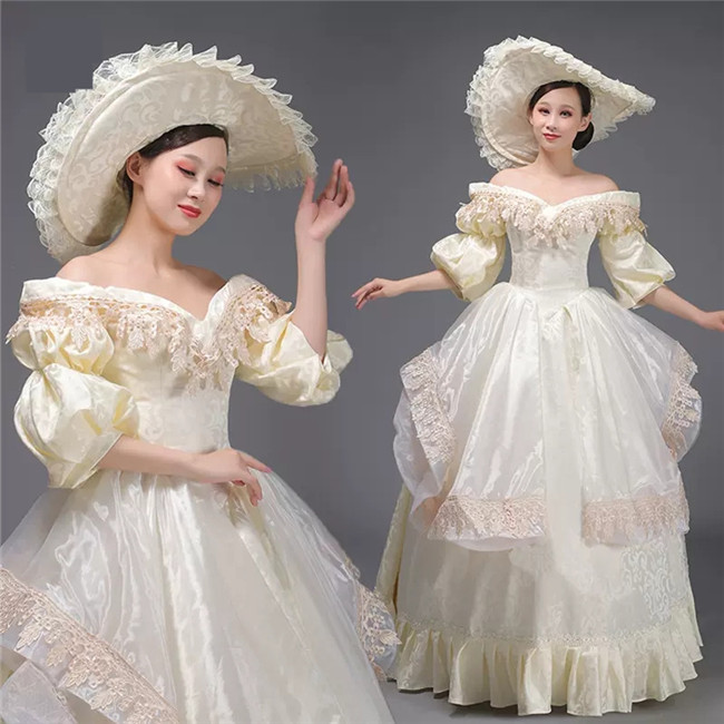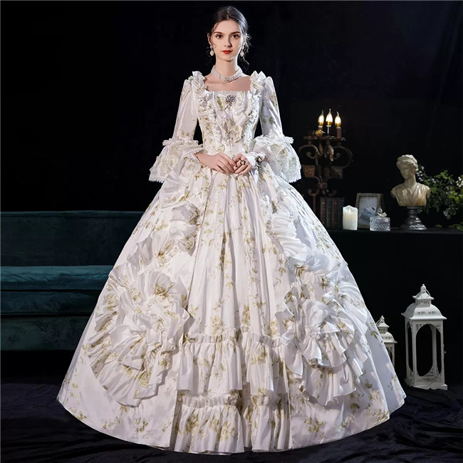 ホワイト 貴族 衣装 王族服 ジュリエット カラードレス 新劇演出 現代劇演出 ヨーロッパ風 結婚式 演出服 パーティードレスコスプレ衣装コスチュームS M L XL