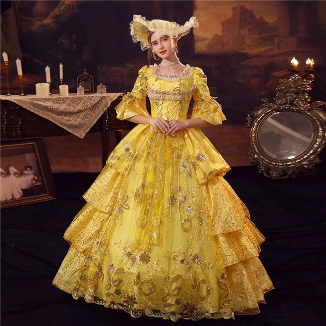 イエロー貴族 衣装 オーダーメイド可能 王族服 ジュリエット カラードレス 新劇演出 現代劇演出 ヨーロッパ風 結婚式 演出服 パーティードレスコスプレ衣装コスチューム