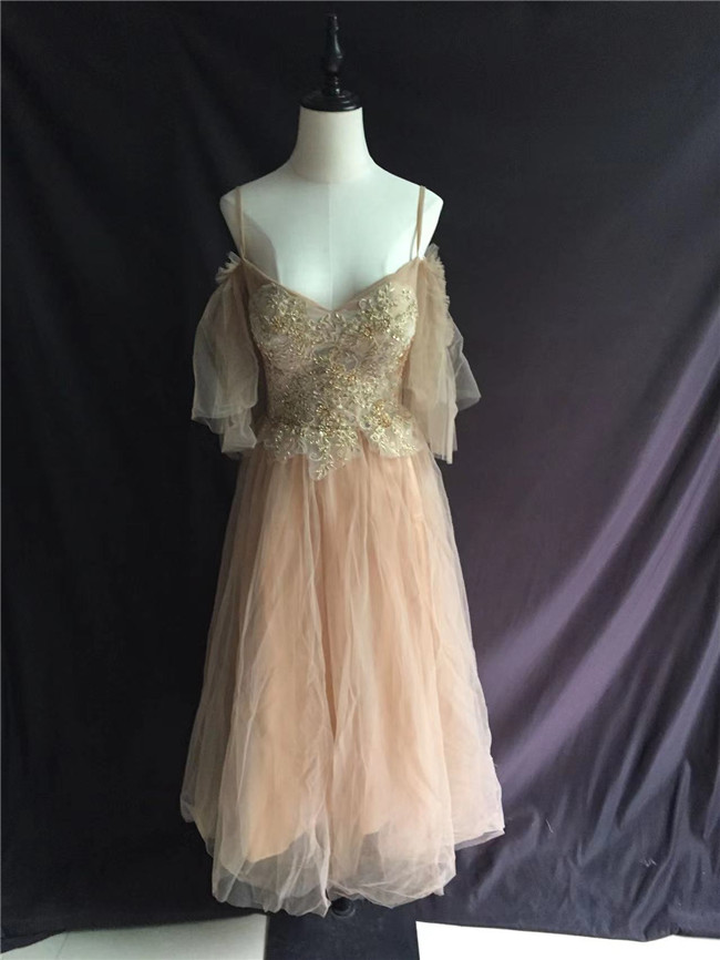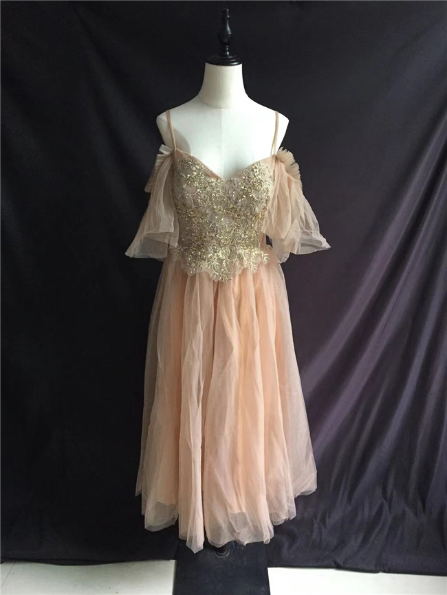 シャンパン 吊りスカート ミデイアム丈ミディアム丈ミディアムドレス レディースドレスパーティードレス