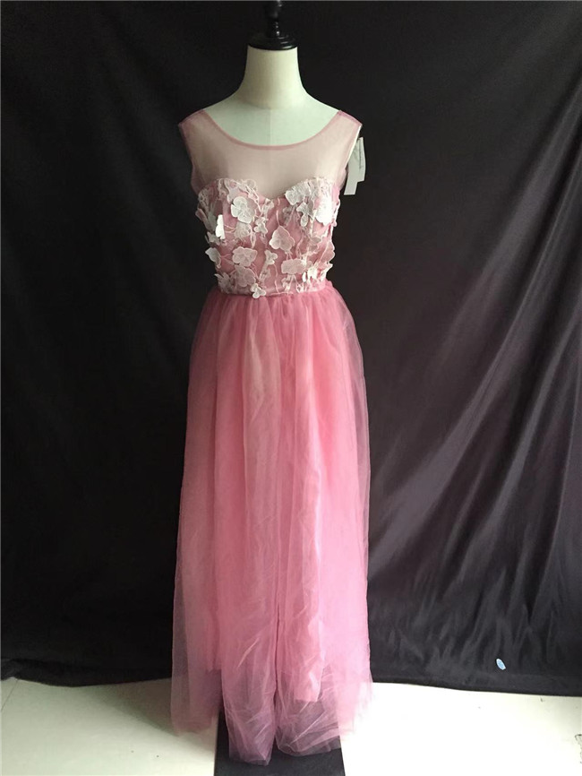 ピンク ノースリーブ 袖なし マキシ丈、ロング丈ロングドレススカート レディースドレスパーティードレス
