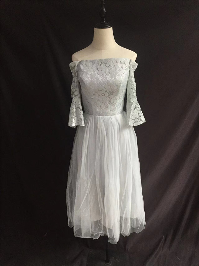 ライトグレー オフショルダー ミデイアム丈ミディアム丈ミディアムドレス レディースドレスパーティードレス