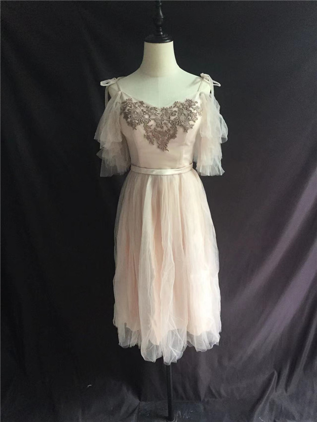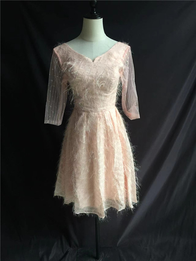肉ピンク 七分袖袖あり ミニドレスシヨート丈 ミニ丈 レディースドレスパーティードレスレディースファッション ドレス
