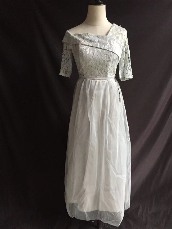ライトグレー 半袖袖あり マキシ丈、ロング丈ロングドレススカート レディースドレスパーティードレスレディースファッション ドレス