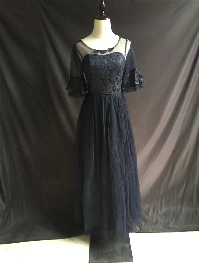 ネイビー 七分袖袖あり マキシ丈、ロング丈ロングドレススカート レディースドレスパーティードレスレディースファッション ドレス