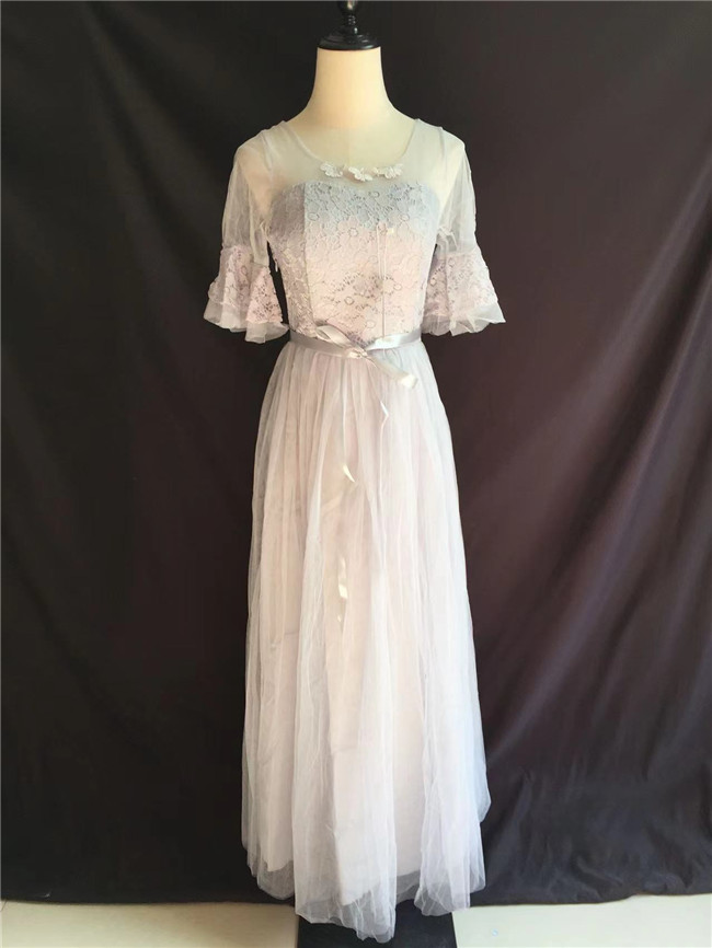 ライトグレー 半袖袖あり マキシ丈、ロング丈ロングドレススカート レディースドレスパーティードレスレディースファッション ドレス