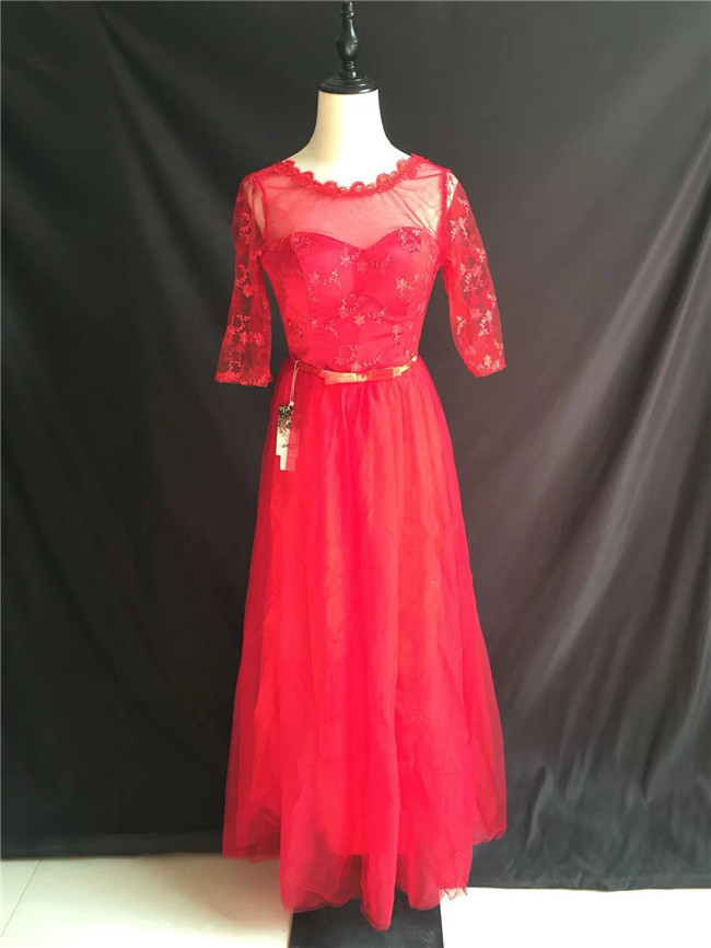 レッド 七分袖袖あり マキシ丈、ロング丈ロングドレススカート レディースドレスパーティードレスレディースファッション ドレス
