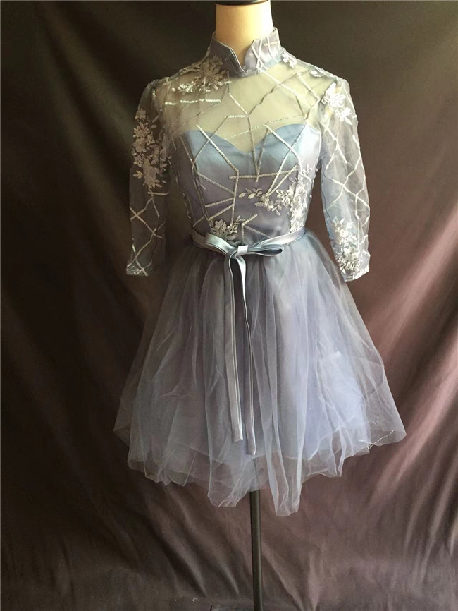 ブルー 七分袖袖あり ミニドレスシヨート丈 ミニ丈 レディースドレスパーティードレスレディースファッション ドレス