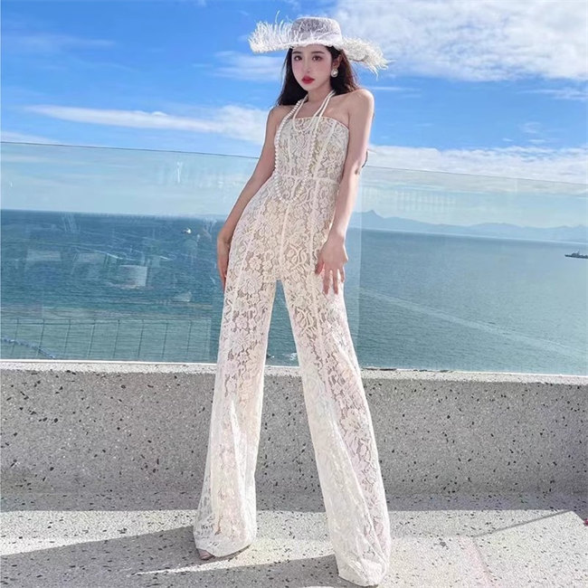 ホワイト総レース ウェディングドレスオールインワン ラインズボンパンツドレス ロングドレス ウェディングドレス レース ~ お花嫁結婚式旅行撮影演出レディースウェディン