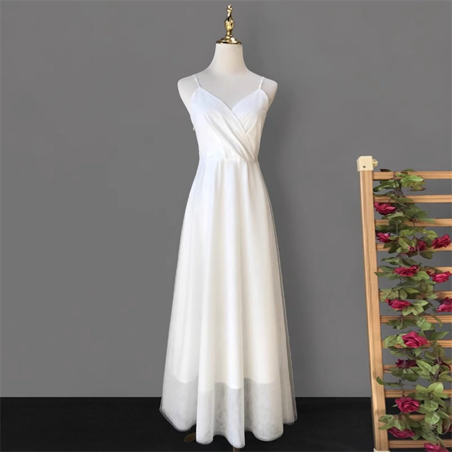 ホワイト ブラック ウェディングドレスAラインノースリーブ ロングドレス ウェディングドレス パーティードレス二次会ドレス海旅行吊りスカートVネックS M L XLレディースワンピース