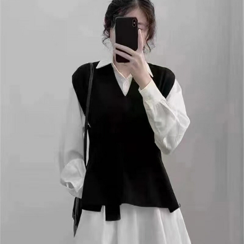 ニットベスト レディース ニット トップス 袖なし リットベスト 重ね着風 ノースリーブ セーター プルオーバー サイドスリット 大きいサイズ 体型カバー 韓国 無地 通勤 着痩せ 春 秋 冬