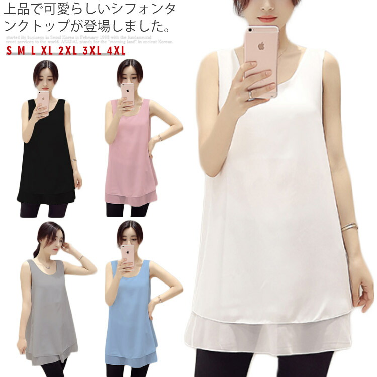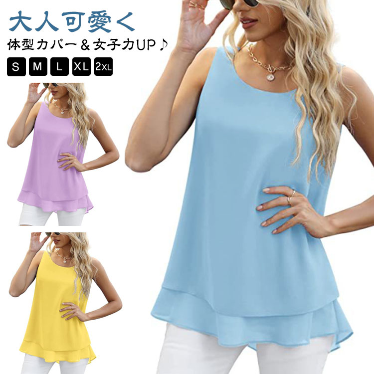 ふんわり シフォン ノースリーブ とろみ シフォン 体型カバー トップス 夏物 タンクトップレディースファッション トップス タンクトップ