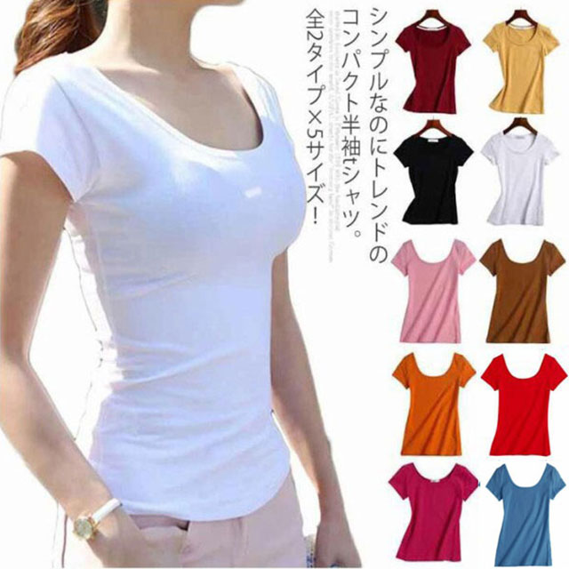 タイト tシャツ 無地 Uネック 半袖 夏 トップス レディースレディースファッション トップス Tシャツ カットソー