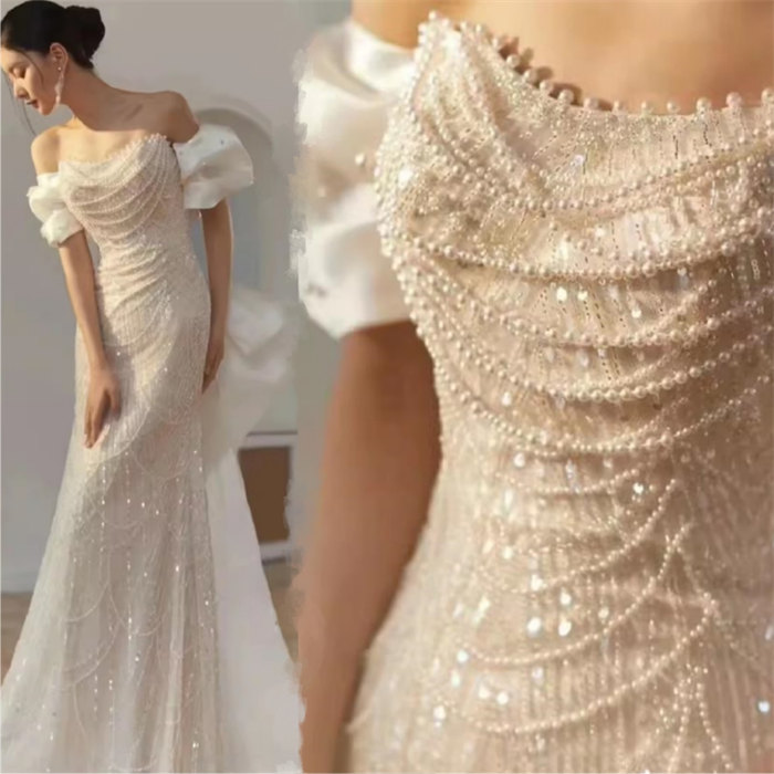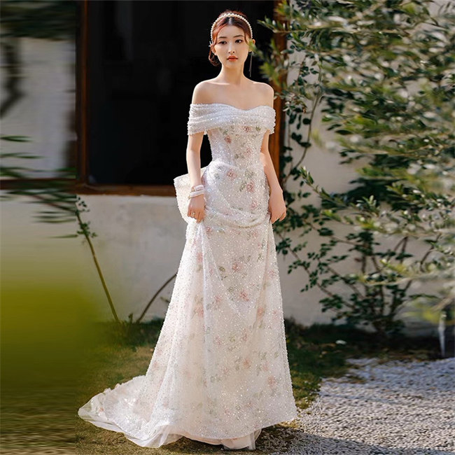 ホワイトロング ウェディングドレス オフショルダー豪華花嫁 結婚式 披露宴 フォマール ドレス シンプル マーメイド ウエディング ドレス チュール 可愛い ブライド ドレス 発表会 演奏会 ドレス