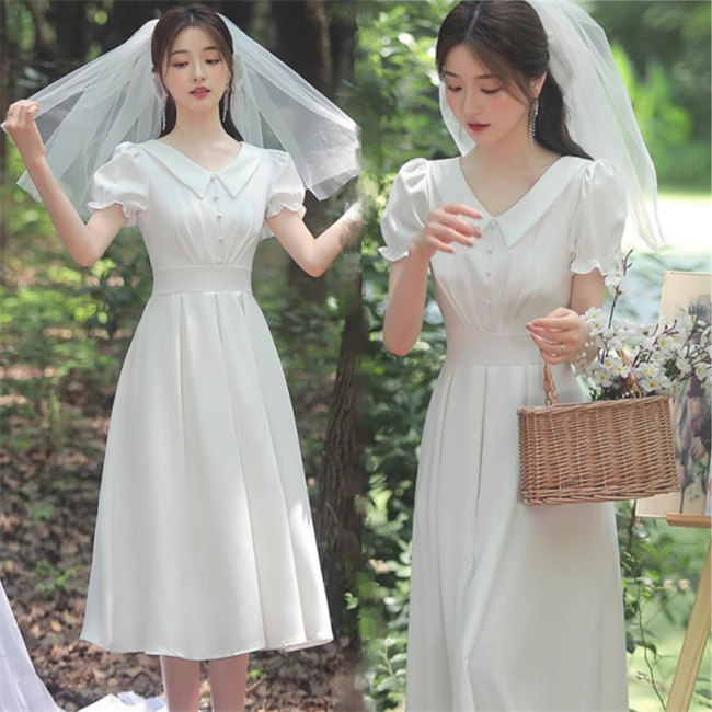 ホワイト ウェディングドレスマーメイド半袖ネック ロングドレス ウェディングドレス 黒リボン付き 素地 編み上げタイプ~3 お花嫁結婚式旅行撮影演出レディースウェディン