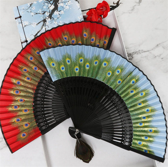 8色展開竹製扇子 絹製練習クジャク柄ダンス用 折りたたみ式 道具扇子 ダンス扇子 長さ24cm レディース 女性 レースラメ扇子 カラー扇子 バレエ 小道具 エレガント演出舞台コスプレコスチュームバレ