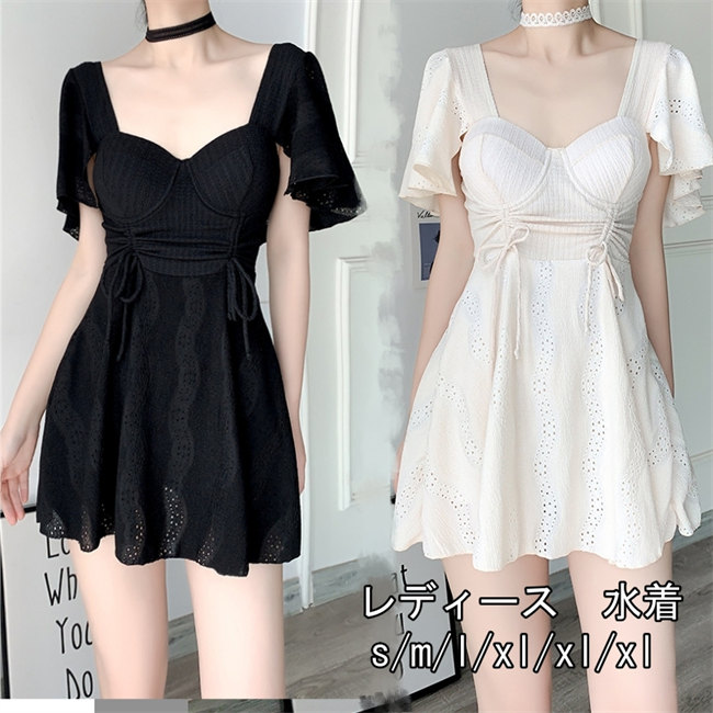黒 白パッド付き 水着 体型カバー ワンピース 黒 ブラック レディース 半袖かわいい通販 おしゃれ レディース水着 20代 30代 40代 50代パンツ付き体型カバーレディース水着カップ付き大きいサ